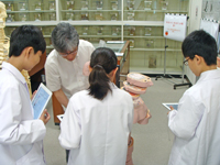 薬剤部では、3名の中学生が、薬剤部内の調剤室や製剤室で薬剤業務を体験しました。さらに、薬剤師の病棟業務やチーム医療の活動を見学したり、メディカルミュージアムを体験しました。