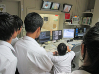 木田診療放射線技師長、牛尾主任診療放射線技師からCT装置や画像について、宮平臨床検査技師長から検査部における各検査装置について、前川リハビリテーション技士長から理学療法士、作業療法士等の違いについて説明を受けました。