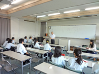 7月13日(月)には、滋賀県立の中高一貫校である河瀬高校(彦根市)を訪問し、医学科または看護学科志望の生徒を対象に、本学の概要及びカリキュラムや特色等について、医学科は堀池副学長から、看護学科は輿水講師(公衆衛生看護学講座)から、それぞれ分かりやすく説明を行いました。
