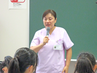 その後、堀池副学長から本学の特色と入試制度について説明があり、また、臨床看護学講座(精神)瀧川教授から、「看護師の役割と機能について」と題した講義がありました。