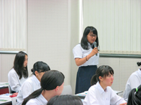 光泉高校とのキャンパス見学会では、同様に、同高の卒業生で看護学科第2学年の久保 惠佳さん、 谷次 里美さん、 松原 葵さん、 宮崎 晴菜さんから、受験対策や本学での学生生活について体験を交えて話をしてもらいました。
