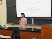 講義に先立ち、堀池副学長、上杉副校長から挨拶があり、続いて、同高の先輩である医学科第2学年 中村 はる香さんから「先輩からの一言」として学生生活や、受験対策について話してもらいました。
