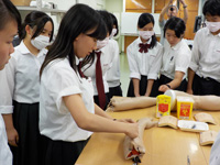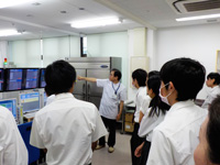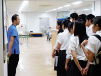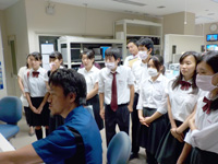 立命館守山高校との高大連携事業では、連続講義の「医療基礎セミナー」の中で、例年夏休みに1日実習と病院見学を実施しており、今年は8月3日(月)に上杉副校長先生の引率で24名の生徒が参加しました。