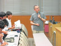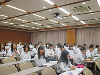 初日は、全体講義として臨床看護学講座(精神)の瀧川 薫教授から「ストレスと心身の健康」と題し、また、病理学講座(疾患制御病理学)の伊藤 靖准教授から「インフルエンザ(夏からインフルエンザに備える)」と題しそれぞれ授業がありました。