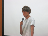 最初に、河下教頭先生から本学の協力に対する謝辞を含めた挨拶があり、続いて、同校の先輩である医学科第2学年の島田 ゆうじさんから「先輩からの一言」として自身の受験対策や学生生活について話してもらいました。島田さんには昨年1年生として話をしてもらいましたが、今年は2年生となり、少し余裕を持って話してくれました。