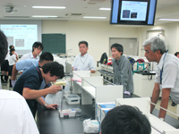 生徒たちは指導教員の指示を仰ぎながら、器用に実験器具を用いて慎重に実験を行っていました。