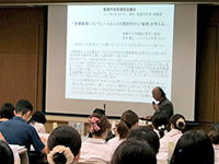 この実習運営協議会は、2部構成で「看護実践能力習得のための効果的な看護実習のあり方と今後の方向性、および実習指導者と教員の連携についての理解を深める」ことを目的に毎年実施しており、今年も本学医学部附属病院も含む看護学実習施設の実習指導者、看護学科教員および助産学実習非常勤講師など86名が出席しました。