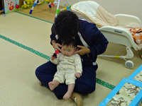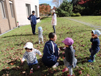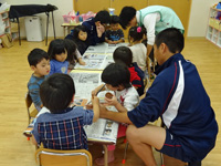 0歳児、1歳児、2~3歳児クラスに分かれて保育業務を体験し、制作活動や戸外遊びに参加して園児たちとふれあいました。