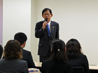 滋賀県健康医療福祉部健康医療課 嶋村清志課長から「この研修で学んだことをそれぞれの病院に持ち帰り、更に糖尿病患者さんのQOL向上に役立てていただきたい。また、後輩の指導やコ・メディカルの調整役として活躍されることを期待しています」との祝辞があり、引き続き松末吉隆病院長から「今後、在宅医療を支えるという観点から看護師さんの役割は非常に重要となるため、引き続きステップアップしていただきたい」との激励の言葉が贈られました。