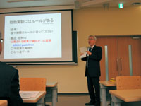 昨今、動物実験をとりまく法律、指針および国際的ガイドラインの枠組みは、機関内管理の適正化を求めるだけでなく研究者が論文等で公表する動物実験の公正性を評価する方向へも向かっていることから、今回、国際学術雑誌に投稿する際に求められる基準(ARRIVE ガイドライン)と、その概要について説明が行われました。