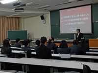 河瀬高校との事業では、1・2年生の生徒14名が2名の教員に引率され、本学を訪れました。