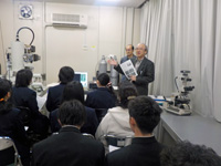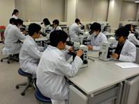 当日は、実習の合間にスキルスラボを訪問し、珍しいシミュレーターを見学するとともに、相見准教授の指導のもと実際の針を使って縫合の擬似体験をしました。さらに実験実習支援センターを訪問し電子顕微鏡を使ったミクロの世界を体験するとともに、附属図書館では医学部ならではの図書館の様子を見学しました。