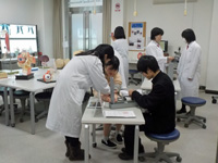 実習には、医学科第3学年の池田 哲也君と小西 拓馬君が実習の補助として参加し、生徒の皆さんと交流しながら実習を支援しました。