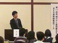 文部科学省「がんプロフェッショナル養成基盤推進プラン」採択事業の一環として、滋賀県薬剤師会、滋賀県病院薬剤師会、協和発酵キリン株式会社との共催で、「第11回地域のがん薬物療法を支える薬剤師養成コース」を1月30日にアヤハレークサイドホテル「伊吹の間」で開催しました。