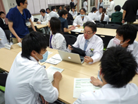 引き続き、本学附属病院を専門研修基幹施設とする17の基本診療領域をブースとし研修医・医学生が各ブースに訪問し詳細説明を受けました。