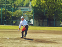 山田副学長による始球式 |