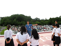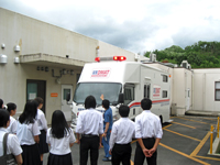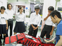 今年は初めての企画として、ヘリポート、救急部とDMATを派遣する特殊車両の見学を行い、救急集中治療医学講座 田畑講師、総合診療部 加藤助教の案内のもと、テレビでしか見られない救急治療の最前線施設を体験しました。