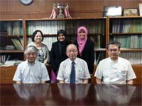 7月15日(金)、マレーシア国民大学の学生2名が学長室を表敬訪問し、塩田学長、山田理事、相浦教授、今枝助教と懇談しました。 本学とマレーシア国民大学とは、2011年に締結された国際交流協定に基づき、相互に学生の派遣及び受入れなどを行ってきました。 今回は、医学部の学生2名が7月14日から8月8日まで本学に滞在し、3週間の研修を行います。研修は7月20日に始まり、看護部での講義、病院見学に続いて、総合周産期母子医療センターと消化器内科での研修が予定されています。