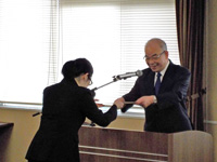 | 塩田学長から通知書交付の様子 |