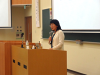 尾松 万里子 学長補佐(男女共同参画担当) による司会の様子 |