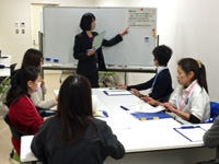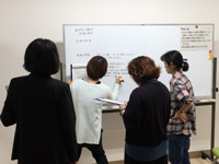 演習の学びをグループで振り返りの様子 |