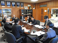 当日は塩田学長及び4名の理事、並びに急遽合流された橋川草津市長と歓談された後、アジア疫学研究センター、滋賀脳卒中データセンター、学際的痛みセンター及び緑色蛍光タンパク(GFP)発現サル創出について各研究者から説明を受けられました。