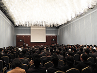 翌1月26日(木)には、会場を琵琶湖ホテルに移し、全国の国立・公立・私立大学病院の事務職員、看護師、薬剤師、技師、医療情報部の教員等、総勢804名の方々に参集いただき、部門連絡会議を開催しました。松末病院長の挨拶および永田大会長の開会宣言の後、病院情報システムセッション、事務セッション、看護セッション等の各部門セッション及びポスター掲示、企業展示会場において、講演及び活発な意見交換が行われました。