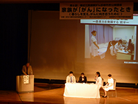 今回のテーマは「家族が「がん」になったとき ~暮らしを支え、がんと向き合うために~」。家族ががんと診断された時の対応や、がんになった後の生き方を、主催病院の医療者が医療ドラマとして演じました。さらに低侵襲ながん治療に関する講演も行いました。