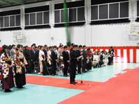 卒業式では、学位記の授与、学生表彰に続き塩田学長の告辞があり、「皆さんが従事する医療の仕事は、病気を治療して病者を救命し、あるいはその苦しみを和らげ、また人々の健康を維持増進するという、大変重要でやりがいのある仕事です。皆さんは、自らが医学・看護学を志したときの初心をもう一度思い起こし、患者さんや社会から真に尊敬される医師、看護師、保健師、助産師などになってください。」と激励されました。最後に、卒業生代表の謝辞があり、卒業式を終了しました。